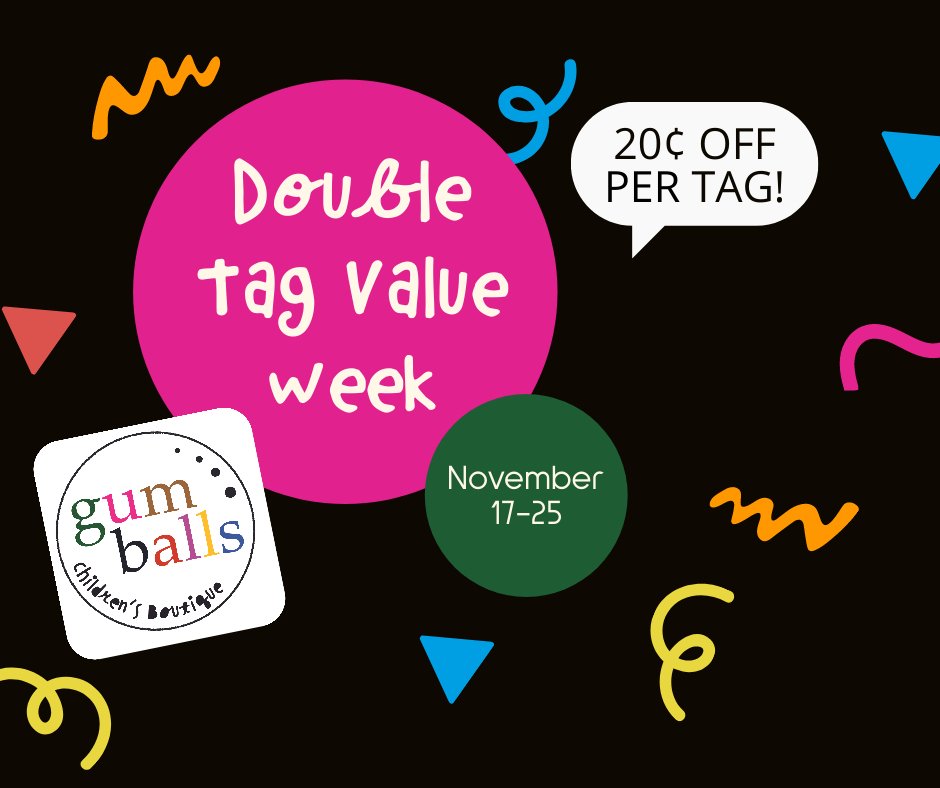 If you’ve been saving those tags, now is the time to bring them in! All week long we are giving double the typical value on returned tags. That means 20¢ off for every tag you bring in!